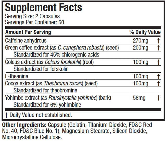 Caffeine là thành phần thường xuyên xuất hiện ở bất kỳ sản phẩm giảm cân hoặc bổ sung năng lượng nào. Nhiều nghiên cứu khoa học đã chứng minh caffeine là một chất hỗ trợ giảm cân mạnh mẽ, giúp ngăn chặn sự thèm ăn, làm tăng sự sinh nhiệt (tăng khả năng trao đổi chất) và có tác dụng như một chất lợi tiểu nhẹ.